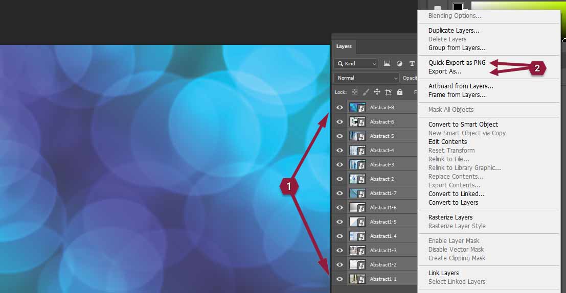 - Then right-click on the layers and select either Quick Export as PNG or Export As, if you want to choose a different format, such as jpg.